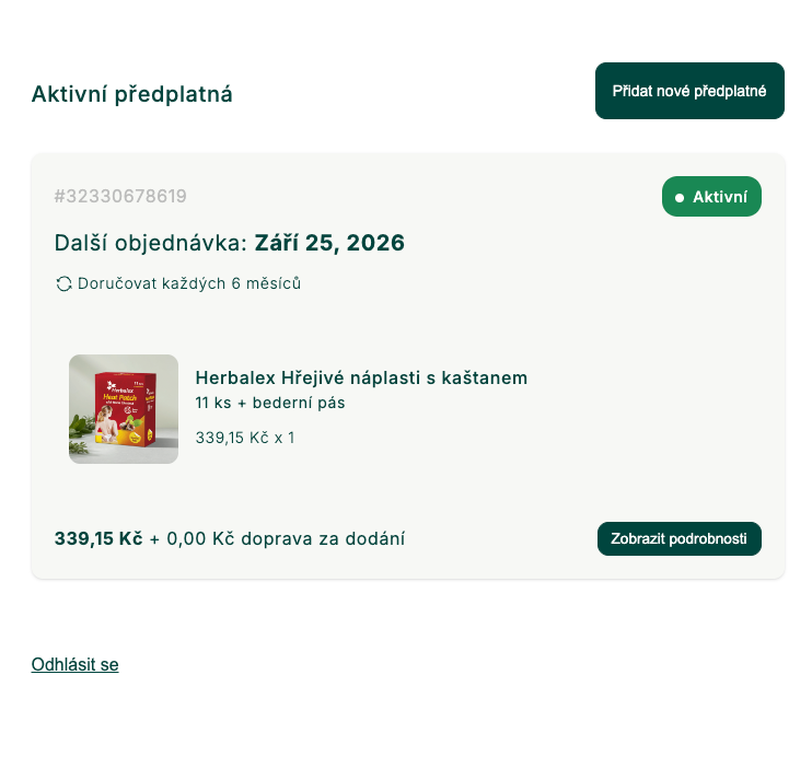 Správu předplatného najdete po přihlášení ve svém účtu v sekci Předplatné.