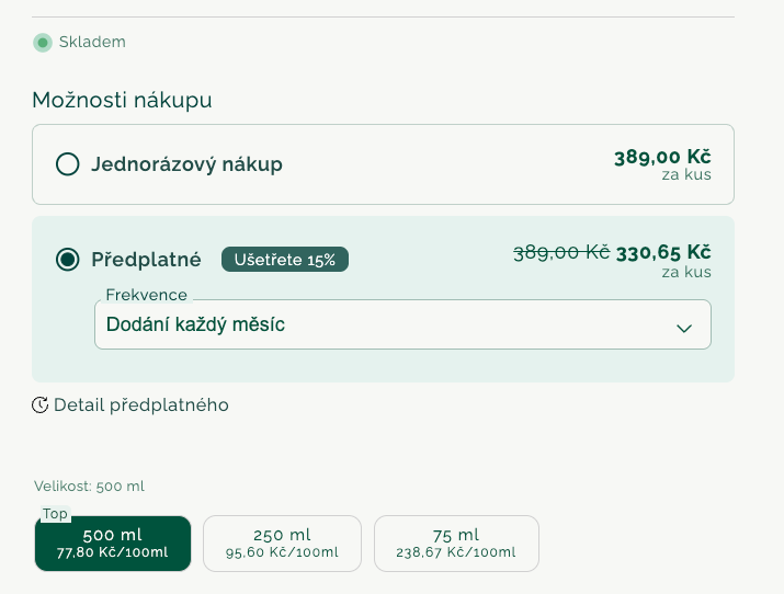 Předplatné dává největší smysl těm, kteří své oblíbené produkty používají pravidelně a chtějí je mít vždy po ruce. Přináší výhodnější cenu, větší pohodlí a jistotu, že na další objednávku nemusíte myslet.