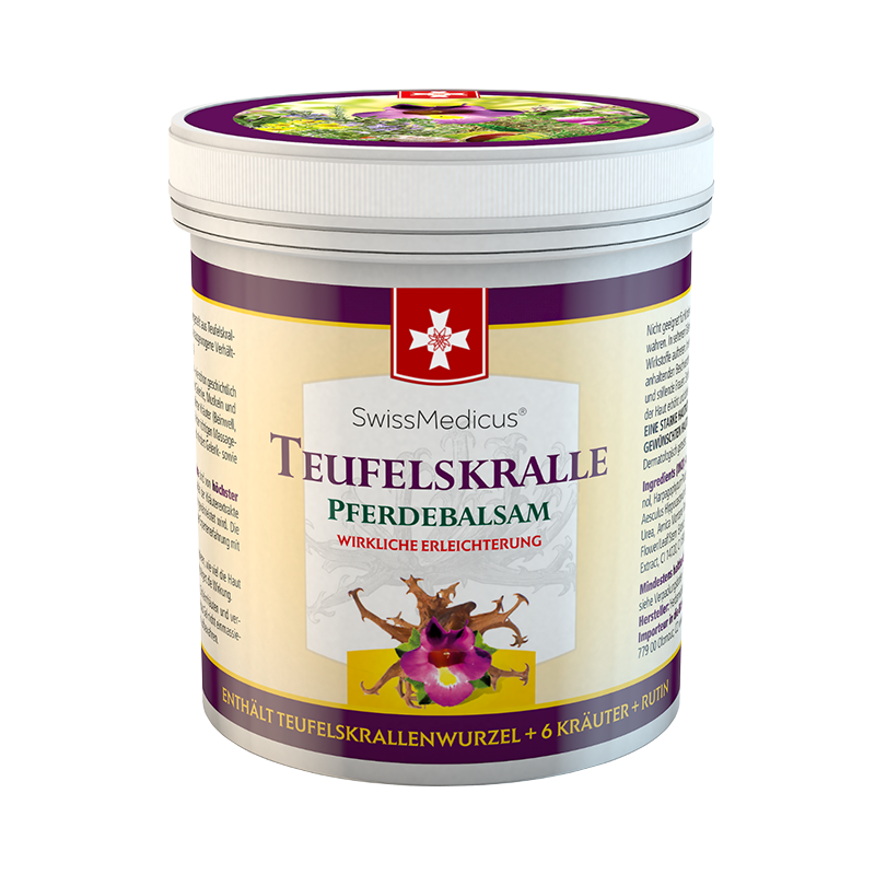 SwissMedicus® Devil's Claw е уникален билков балсам, произведен от екстракт от корен на дяволски нокът, допълнен с 6 доказани билки и рутин. Балансираното съотношение на тези съставки действа синергично и гарантира мощен ефект.
